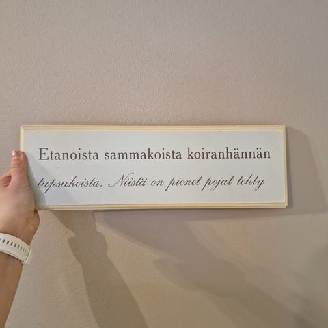 Kyltti on keraaminen. Voi pitää pystyssä tai kiinnittää seinään.