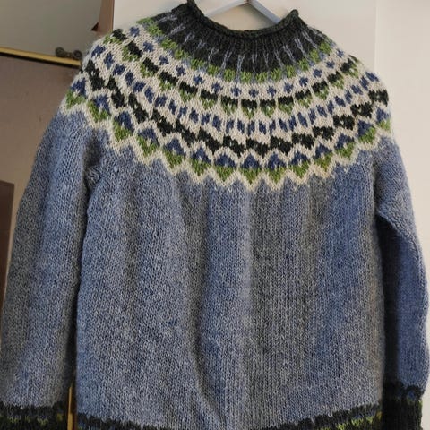 Uusi käsin kudottu neule, lankana islantilainen Plötulopi. Erittäin kevyt, mutta lämmin neule. Vastaa kokoa s/m.