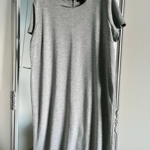 Esmara mekko, koko 44, sinipohjainen väri. Mekossa on ruutukuviointi ja kaksi vetoketjukoristetta etupuolella (eli ei oikeita taskuja). Kai-kai 50cm. Pituus 94cm.