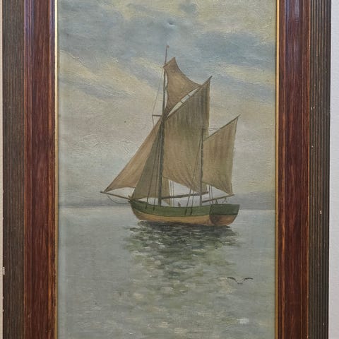 Carl-Sand 1918 Antiikki öljymaalaus Laiva