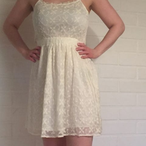 Mekossa on pitkät hihat ja vyötäröllä kuminauha, joka muotoilee istuvuutta. Materiaali viskoosi.