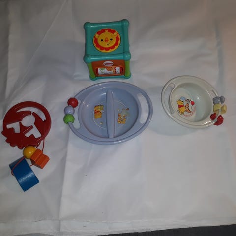 Numero/kirjainmagneetteja, muistilappuja, taikahiekka/muovailuvahamuotteja ja mm.nuken hiusnipsuja.