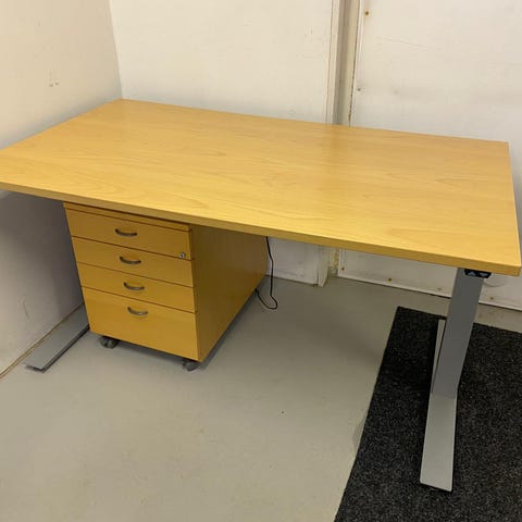 Hyvässä kunnossa oleva iskun sähkösäädettävä työpöytä ja lipasto. Lipaston mitat 43x62x53. Sähkösäätö täytyy tasapainottaa, tällä hetkellä ei toimi aina oikein. Muuten erinomaisessa kunnossa, ei käytön jälkiä. On painava joten tarvitsee kantajat mukaan.