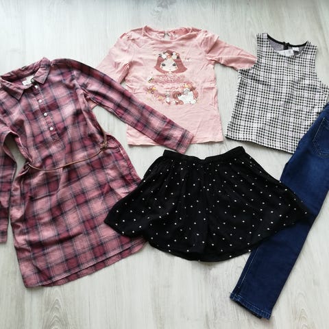 Kaikki vaatteet hyvässä kunnossa; yhdellä tytöllä käytössä olleet.