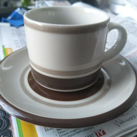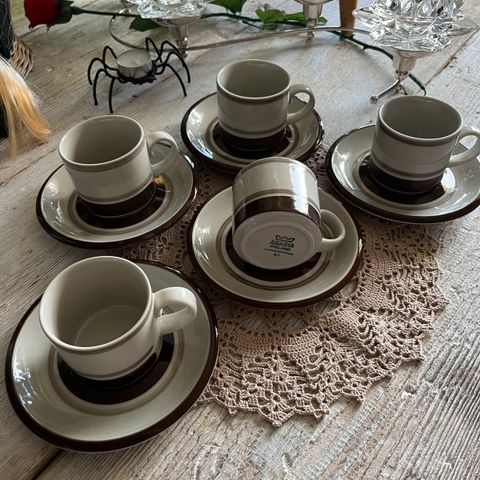 Kahvikuppeja on 6 kappaletta lautasineen, 20 €.