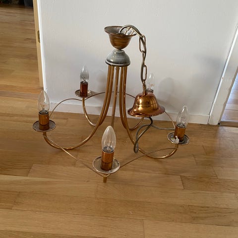 Kunto: huippu kunto, kaikki lasiosat ehjiä, toimiva kattovalaisin. Pari kpl varapalloja mukana.