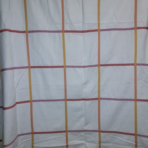 Kaunis, ruusukuvioinen pitkä verho. Verhoja on 1 kpl. Paksuhkoa puuvillaa, laskeutuu kuitenkin ihan hyvin. Kangas on tiivistä, ei kuitenkaan pimentävä.