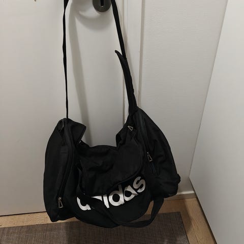 Adidas ja Nike Kangas olkalaukku unisex-mallille. Laukku on valmistettu kestävästä kankaasta ja soveltuu monipuoliseen käyttöön, kuten urheiluun tai vapaa-aikaan.