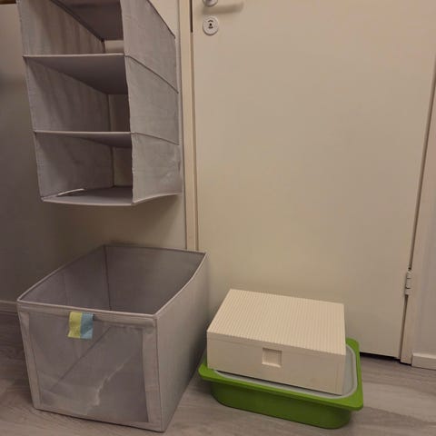 Myydään 2 Ikean lastenhuoneen säilytyskoria. Menevät kasaan ja kannet saa irrotettua. Yht. 3 €.
