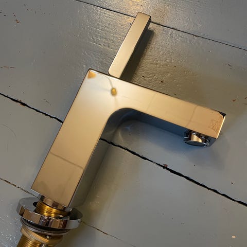 Siistikuntoinen pesuallashana, kromin värinen.