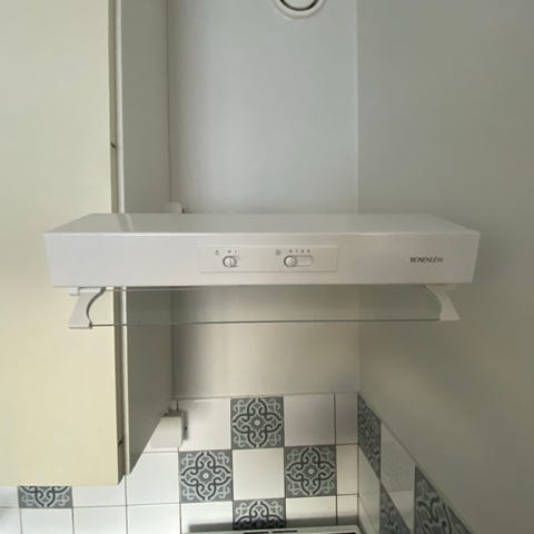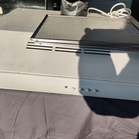 Teräs. Lev 60 cm. Ostettu väärin. 2 pientä reikää tuulettimen vasemmalla ja oikealla sivussa.