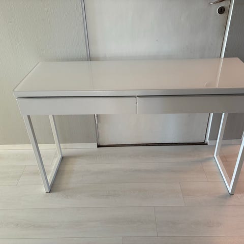 Edullinen meikkipöytä peruskäyttöön. Peilissä näkyy liimajälkiä aiemmista valoista, joten ulkonäkö ei ole täydellinen (katso kuvat). Pöytä on kuitenkin toimiva ja käytettävissä heti. Hinta neuvoteltavissa.