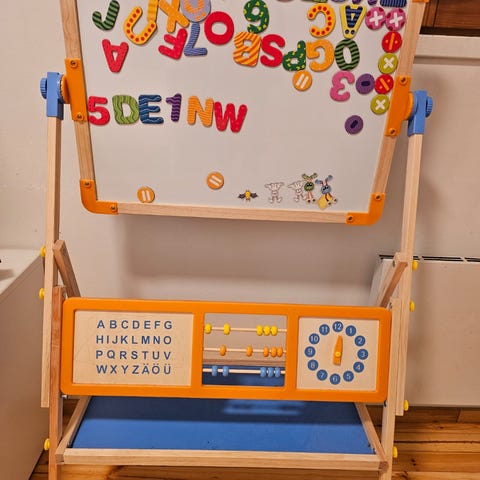 Puinen opetustaulu lapselle, itsesäädettävä kellotaulu, viikonpäivät, kuukaudet, vuodenajat, säätilat. 44cm x 27cm.