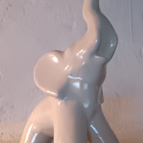 Korkeus 11cm, hyvässä kunnossa, toisesta jalasta lähtenyt hieman väriä.