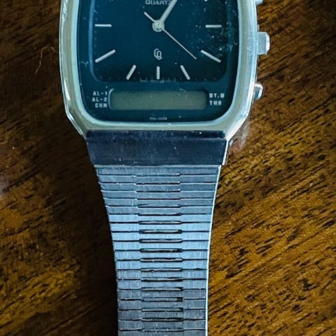 Kuvan mukainen kullanvärinen Citizen Quartz-kello. Kellossa on myös päivyri.