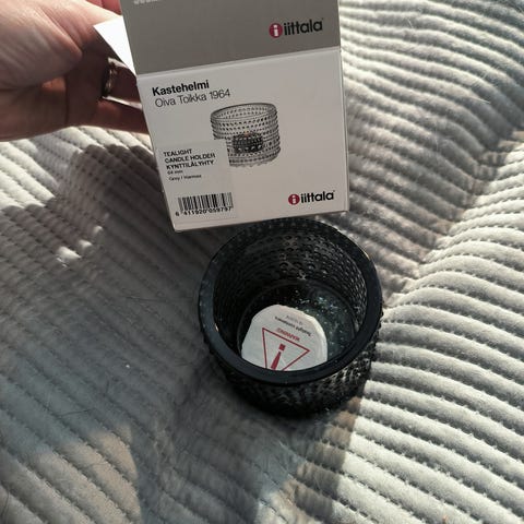 Iittala Kastehelmi kynttilälyhty. Värinä vaaleanvihreä. Muistaakseni tämä väri oli myynnissä ainoastaan k-citymarketissa.