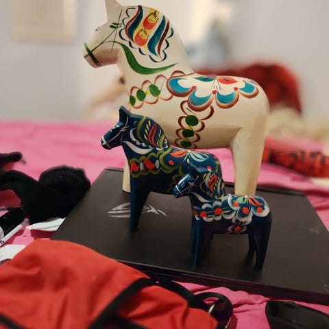 Myydään vanhat Taalainmaan hevoset 2kpl. Isompi korkeus 14,5cm ja pienempi korkeus reilu 8cm. Hinta yhteensä 65€. Nouto Porvoo tai postitus kuluja vastaan.