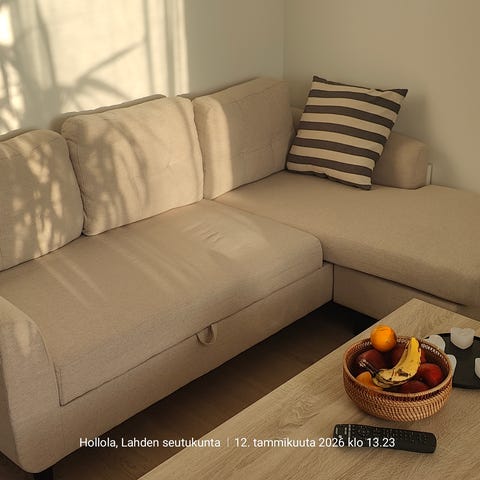 Divaani vuodesohva vasenkätisyys ja ei vaihdettavissa. Ostettu 2023