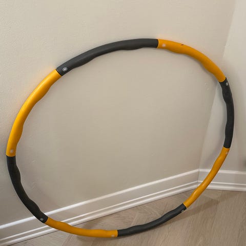 Vähän käytetty Hularengas, jonka läpimitta on 85 cm ja paino n. 1 kg. Koostuu kuudesta yhteenliitettävästä osasta.
