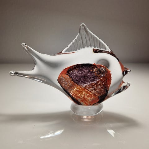 Hakusanat: lasikala, lasinen kala, figuuri, koriste-esine, kaunis, vanha, keräily, lahja, lahjaidea, sisustus