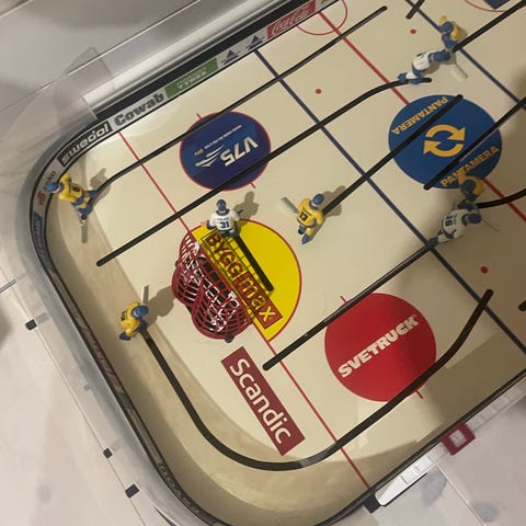Peli on muuten kunnossa mutta toinen tulostaulukko ja päätypleksi hieman irronnut. "jäässä" pieni reikä ei haittaa käyttöä.