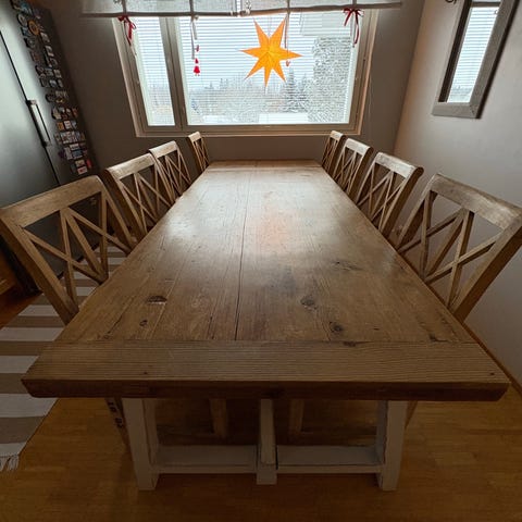 Myydään tarpeettomana tosi upea ja laadukas täystamminen ruokailuryhmä.