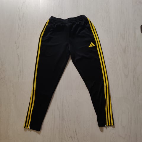 Adidas mustat naisten urheiluhousut, koko M. Housuissa on valkoiset raidat sivuilla ja valmistettu hengittävästä materiaalista. Soveltuvat monipuoliseen liikuntaan ja vapaa-ajan käyttöön. Nouto Annala/Tays