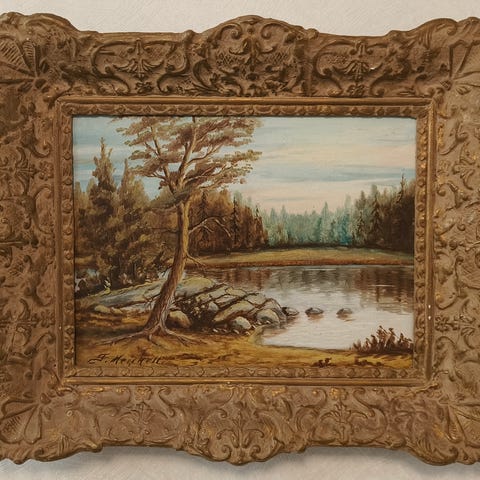 Myydään maisemataulu aiheena lapin joki. V.T. -63.