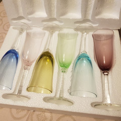 Uuteen vuoteen kuohuviinilasit 6 kpl 22 cm korkeat värilliset uudet paketissaan
