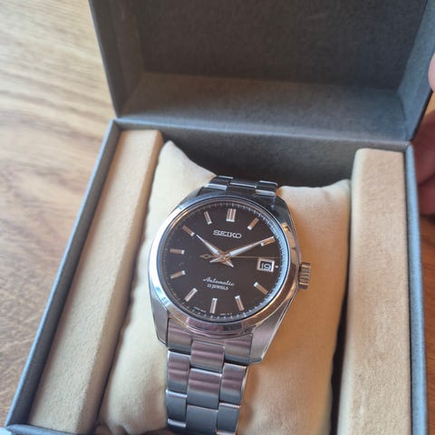 SRQ003 on vain 1000 kappaleen rajoitettu erä. Sen runko muistuttaa katana-miekan kaarevaa muotoa, ja peilipinta on tehty Zaratsu-tekniikalla. Ostin kellon uutena vuonna 2016 Yhdysvalloista, ja se on ollut minulla siitä lähtien. Olisin luokitellut kellon kunnoltaan "kuin uusi", ellei siinä olisi muutamia pieniä naarmuja takalevyn tappien alueella (syntynyt rannekkeen vaihdon yhteydessä) ja pieniä hiusnaarmuja rannekkeessa.
