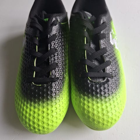 Starter koon 33 jalkkiskengät/nappikset, vihreä-musta. Mukana valkoiset Starter säärisuojat. Jalkapallokengissä on nastapohja, joka soveltuu nurmipelaamiseen. Olleet satunnaisessa käytössä 6-7v.tytöllä.