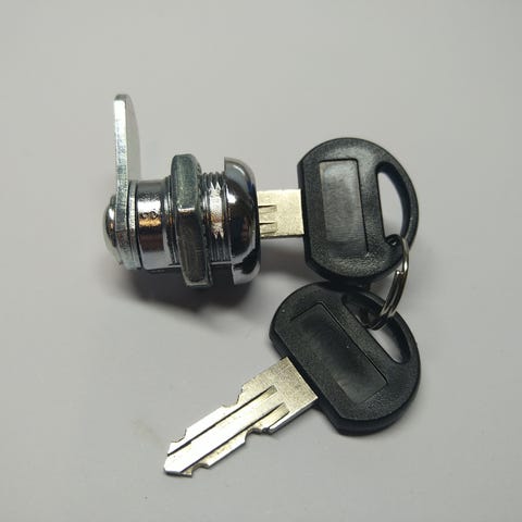 Musta metallinen lukko, mukana kolme avainta. Lukon sangan aukeaman koko on 25 x 30 mm, sopii yleiskäyttöön esimerkiksi säilytyskaappien lukitsemiseen.