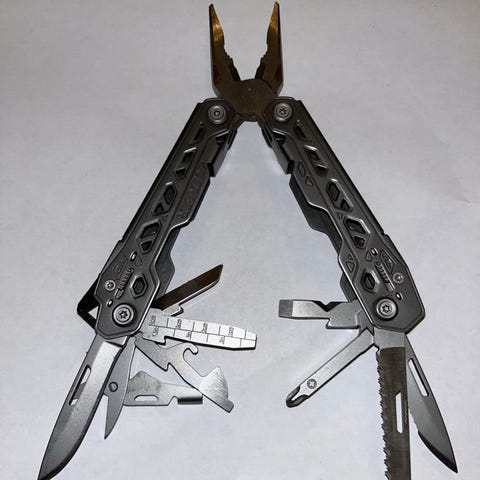 Myyn kompaktin ja kevyen Gerber Shortcut -multitoolin. Tässä mallissa on kätevä ulkopuolelta avautuva saksimekanismi sekä useita hyödyllisiä työkaluja arkeen. Runko on punainen anodisoitu alumiini ja kokonaisuus on siistissä kunnossa.