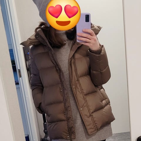 Takki on kivan sinapinruskean värinen ja untuvatäytteellä. Mallissa on iritettava huppu, kaulus ja useita taskuja. Vetoketju ja napit takaavat hyvän sulkeutumisen. Takki on pesty ja puhdas. Päällikangas on paremmanlaatuista kuin uusimissa Marc O'Polon takissa.