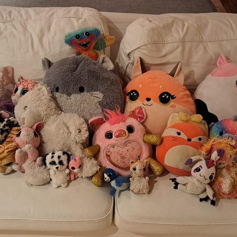 Myydään 2 squishmallows-tyyppistä eläinpehmoa, koira ja pupu. Yht. 5€