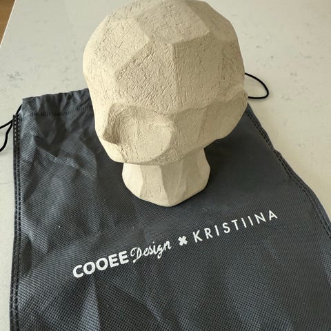 Cooee x Kristiina Olufemi keraaminen pääveistos harmaassa värissä. Veistos on käsintehty ja siinä on kulmikas, geometrinen muotoilu. Tuotteen pohjassa näkyy valmistajan ja suunnittelijan nimet. Mukana tulee suojapussi.