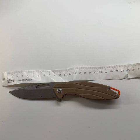 Myynnissä moderni ja hyvin vähällä käytöllä ollut taittoveitsi. Terä avautuu ja sulkeutuu sulavasti, ja kahva tarjoaa mukavan otteen.