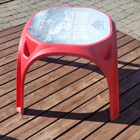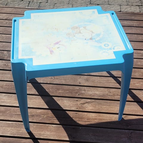 Lasten pöytä koko 60*60. Korkeus 46cm. Maalipinnassa vähän kulumaa paikoin.ollut sisätiloissa.