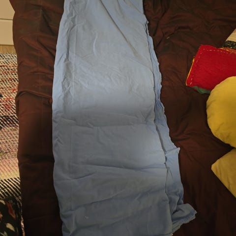 Vaaleanpunainen kangas, valmistettu 100% puuvillasta. Verho on kevyt ja hengittävä, soveltuu kodin sisustukseen. Materiaalin hoito-ohjeet ovat kuvassa näkyvissä. Verho on yksivärinen ja siinä on ommeltu reuna. Koko 220×233cm