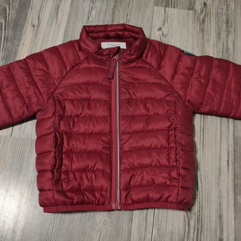 Myydään siistissä kunnossa oleva Popin kevyttoppatakki. Väriä on vaikea sanoa, ehkä viininpunainen. Tosi söpö pienen taapertajan päällä.