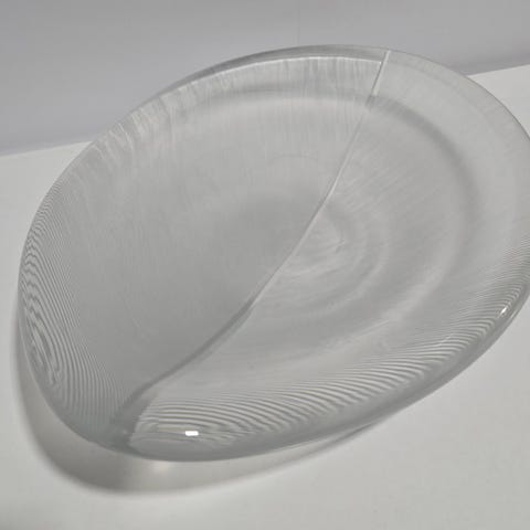 Pyörittäen puhallettua väriverholasia. Väriltään kirkas ja harmaa, korkeus 25 cm. Signeeraus Timo Sarpaneva Iittala -58.