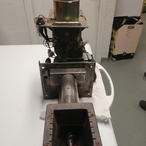 Tästä iso pelletti syöttömoottori käy varastosiilosta polttimelle syöttöruuviin