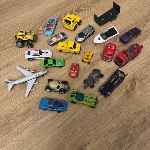 Sekalainen pikkuauto lelupaketti mm. Mattel hotwheels autoja helikopteri mini lentokone monster truck rekka dinosaurus auto jne leluja paketti