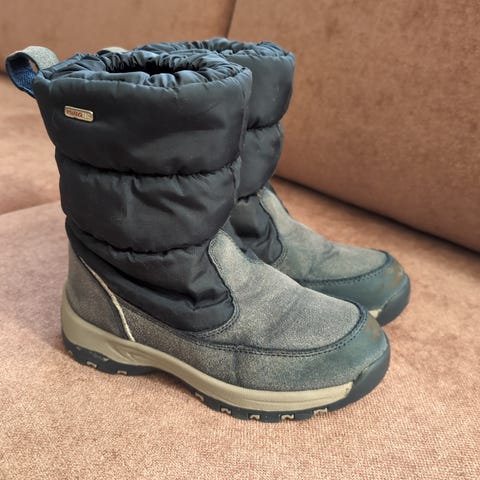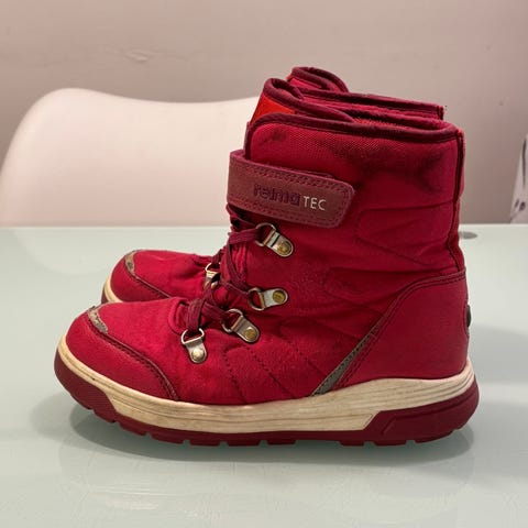 Reimatec-talvikengät, joissa lämmin villasekoitevuori. Vedenpitävä talvikenkä on kevyt ja erittäin helppo pukea jalkaan. Joustava kumipohja antaa hyvän pidon ja villasekoite vuori yhdessä huopapohjallisen kanssa lämmittää varpaita. Kevyet ja mukavat! Hyväkuntoiset.