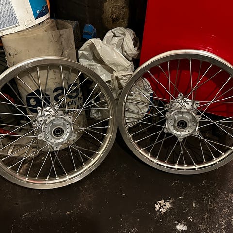 Mopon pinnavanteet ja renkaat, 17 tuumaaset. etuvantees 15mm akseli ja takarenkaas 17mm. takajarru levy 210mm ja etulevy 270mm .Sisältää vanteet, renkaat ja jarrulevyt eli ei sisällä takalätkää .Laakerit ja laakeripesät hyväkuntoiset