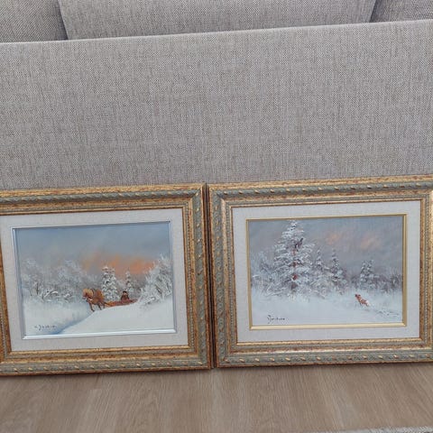 Kettu ja joutsenet 65€kpl. Mitat kehyksineen, 23x21 cm. Kuva-ala noin 15x12 cm. Nouto tai postit ostajalle.