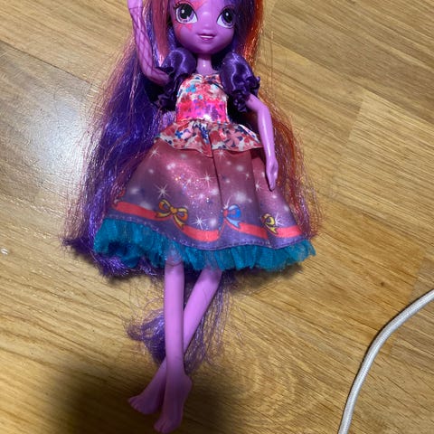 Hieno Aria-nukke elokuvasta My Little Pony Equestria Girls: Rainbow Rocks. Tämä hahmo on yksi elokuvan pahiksista. Nukke on hyväkuntoinen, hiukset hieman pörrössä. On myös laitettu omat hiuslenksut.