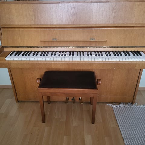 Annetaan toimiva, mutta viritystä kaipaava piano uuteen kotiin. Parissa kohtaa koiran puremajäljet, koiratalous. Vain nouto.