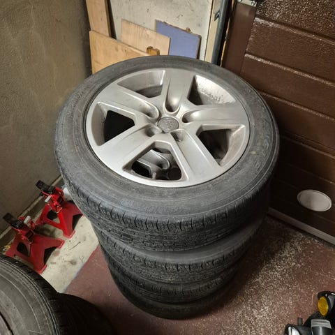 Rial 16 tuuman alumiinivanteet 205/55 nastarenkailla. Renkailla vielä hätäpäissään ajelee.