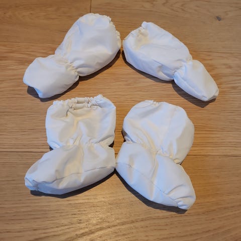 Myydään äitiyspakkauksen tumput ja töppöset, koko 19-21. Nouto Ritaharjusta.
